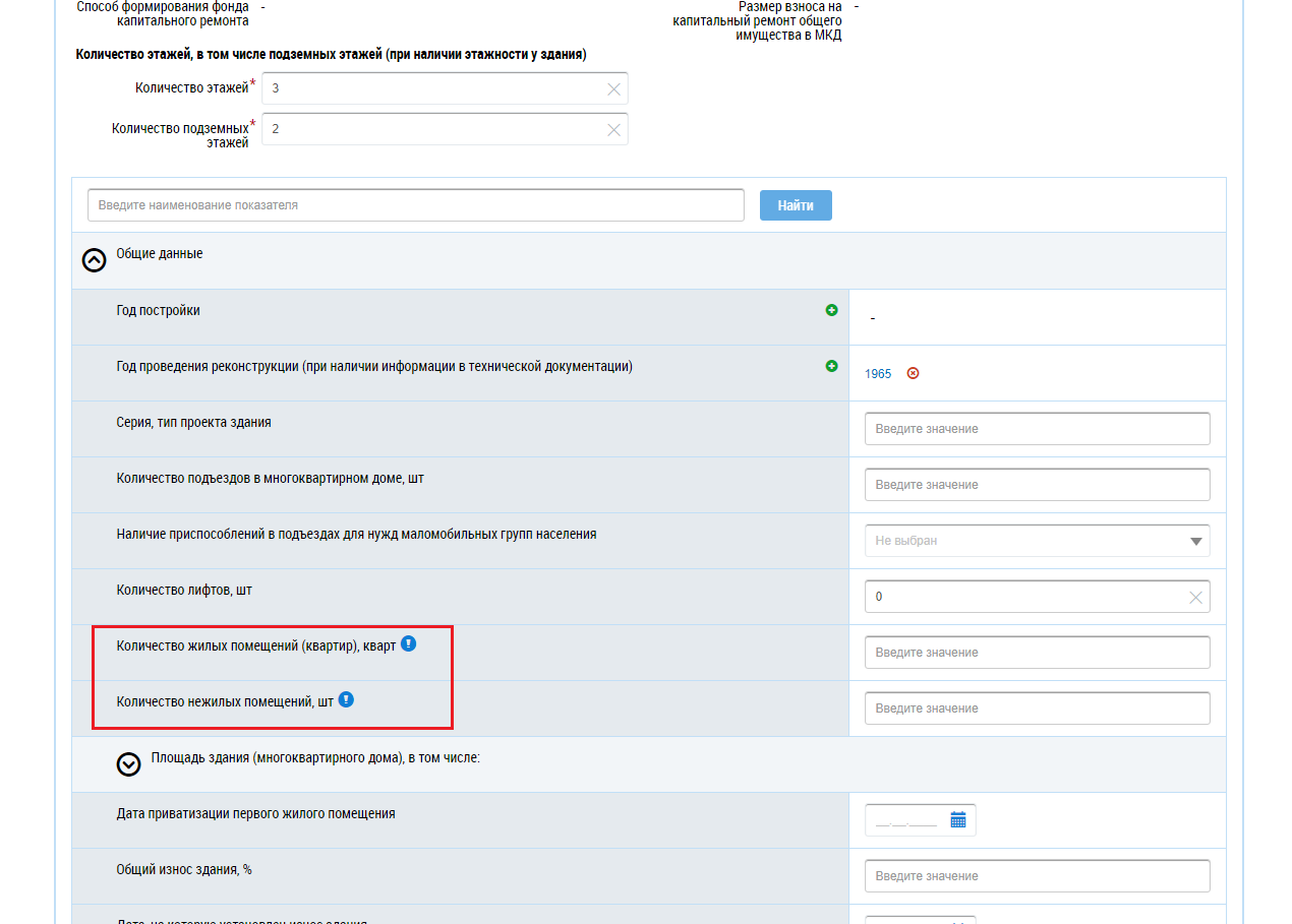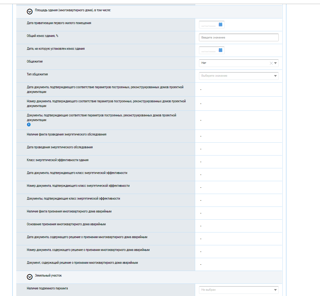 Почему нет доступа для заполнения определенных технических характеристик многоквартирного дома, например, об энергетической эффективности здания (стоят прочерки в форме для заполнения, поля неактивны)?