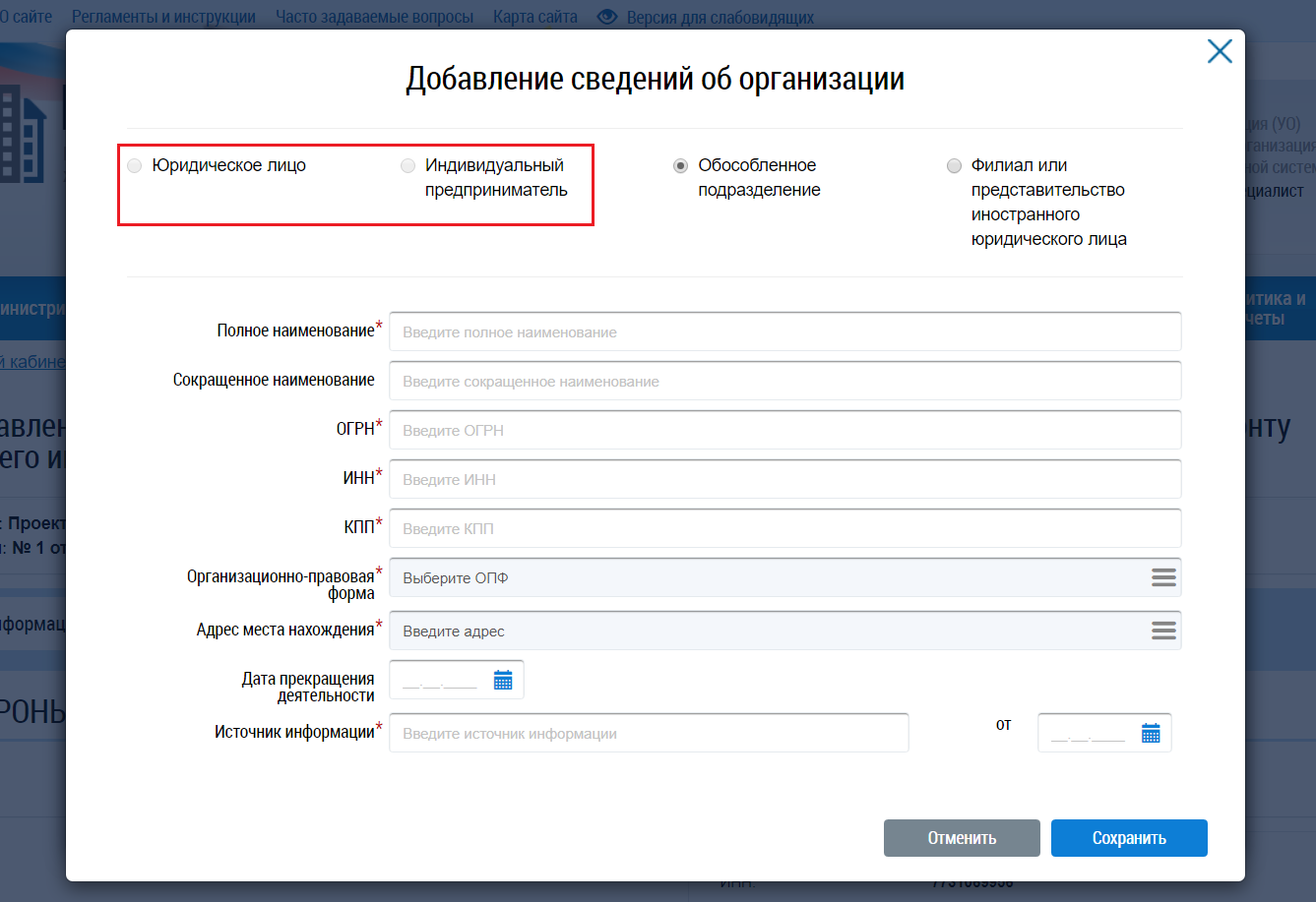 Почему не могу добавить новую организацию при размещении договора подряда, а поиск по ОГРН не дает результата?