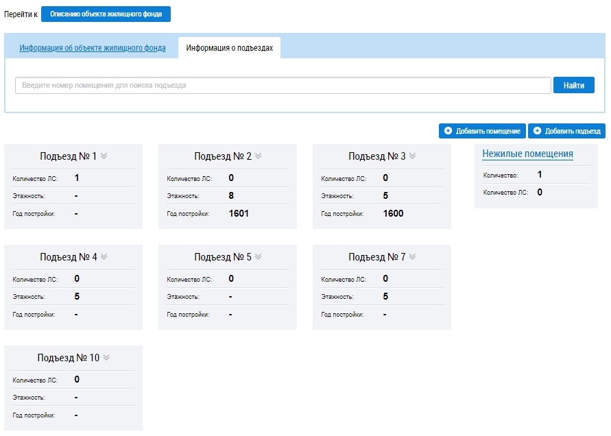 Возможно ли распределение помещений по подъездам после того, как они были добавлены?